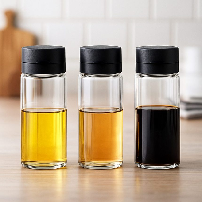 セリアの「耐熱ガラス調味料ボトル」が大人気!シンプルで高見えする万能ボトル【100均キッチン収納】